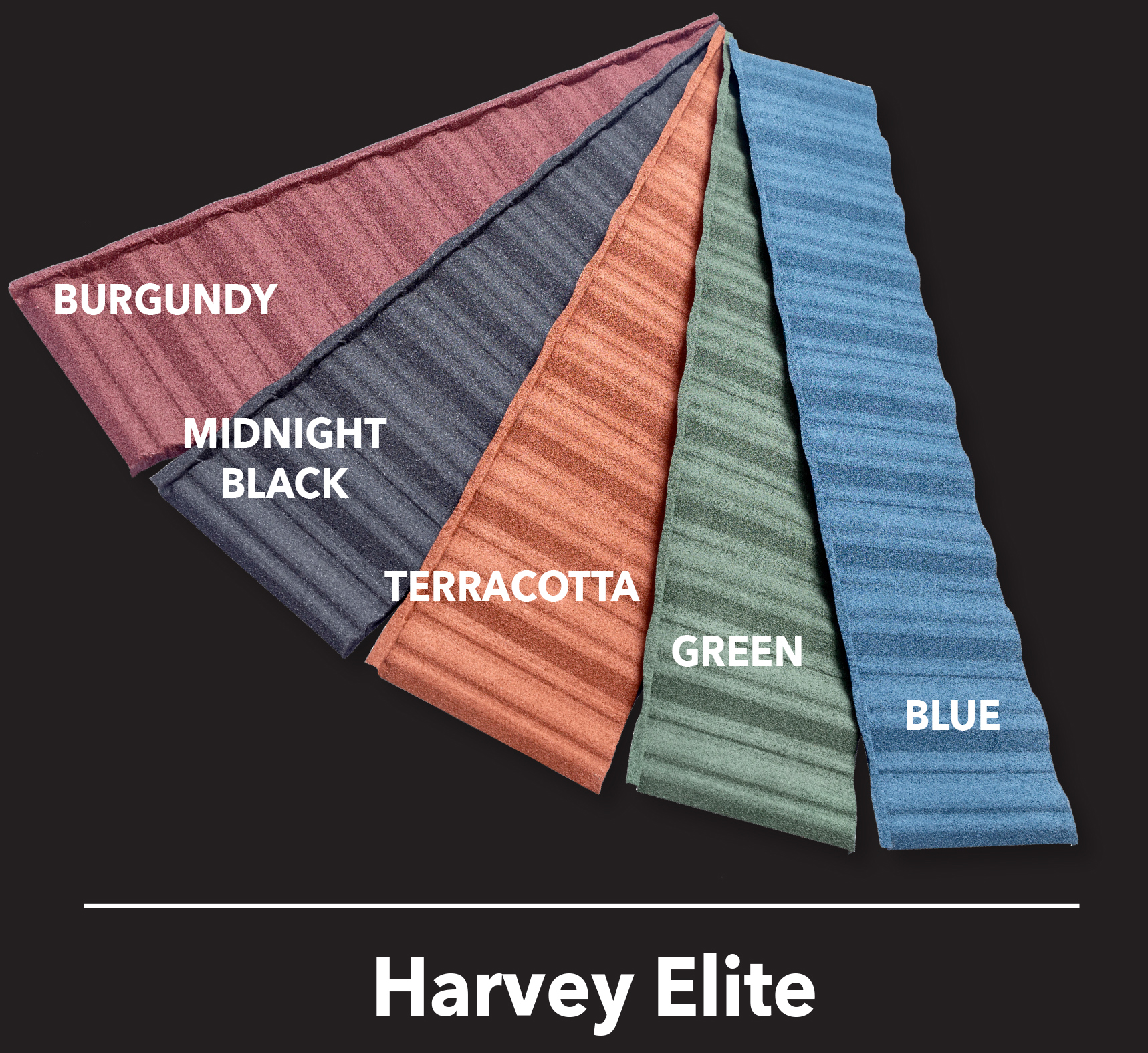 Harvey Elite Roof Tiles are available in a range of five standard colours to achieve your desired look.